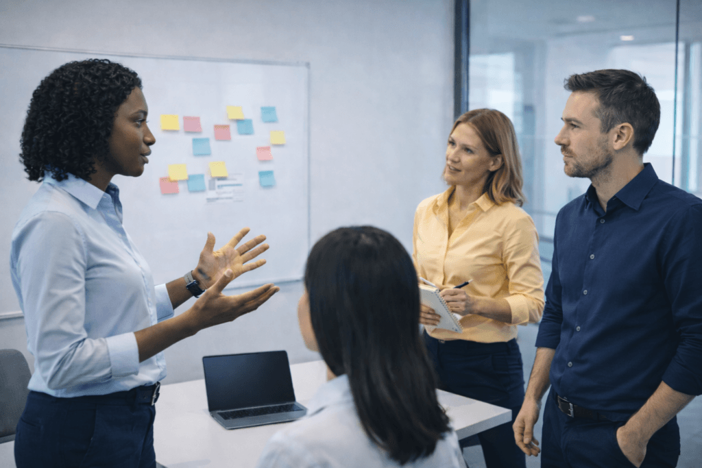 Wir achten darauf, Formate schlank zu halten: Typischerweise reichen wenige, gut vorbereitete Sessions pro Monat, ergänzt um kurze Abstimmungen. Viele Impulse integrieren wir direkt in bestehende Meetings und Entscheidungsrunden, um zusätzlichen Aufwand möglichst gering zu halten.